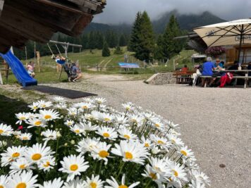 Si arriva alla Malga di Lauregno in un’oretta. Qui potrete bere qualcosa o gustare una fetta di torta o un piatto semplice della tradizione, come il classico uovo speck e patate. Per i più piccoli ci sono una sabbiera e le galline libere. Qui vi raccontiamo la Malga di Lauregno.