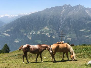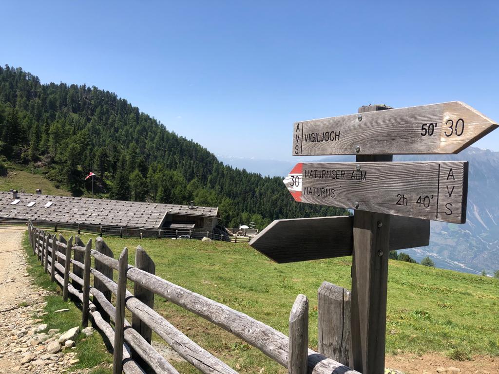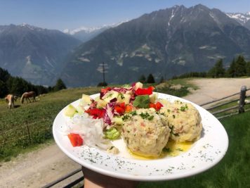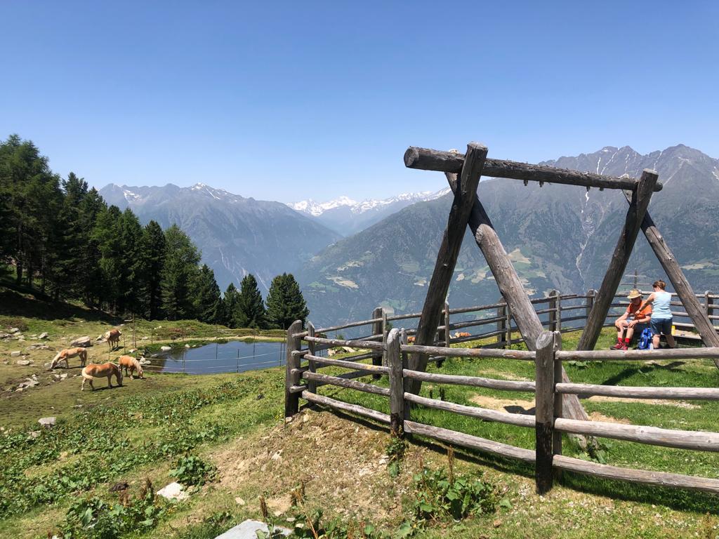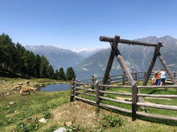 In un’ora circa di camminata attraverso il bosco (no passeggini) potete arrivare alla Naturnser Alm (Malga di Naturno – 📞 328 4346659), situata a 1922 metri d’altitudine. Dalla terrazza un’incredibile vista sulla Val Venosta, il gruppo montuoso di Tessa e la Val Senales. La malga, curatissima e con i piatti tipici della cucina altoatesina, è gestita dalla famiglia Walzl.