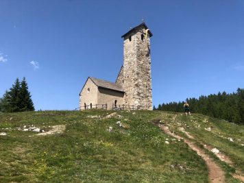 Oppure prendere la forestale che in un’oretta sale fino alla chiesa di San Vigilio, 300 metri di dislivello, fattibile anche con i passeggini da trekking. Comunque sia, l’arrivo a questa deliziosa chiesetta sul colle (1793 metri), risalente al Medioevo, è sempre emozionante. Il 26 giugno si celebra la festa del Santo. Attorno, le storiche case di villeggiatura dei secoli scorsi che assieme alle malghe rendono il paesaggio davvero incantevole.