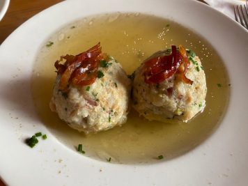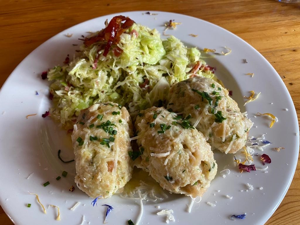 Naturalmente non mancano i dolci, primi tra tutti i kaiserschmarren, lo strudel di mele con panna montata e l’omelette con marmellata. Buono anche il caffè.