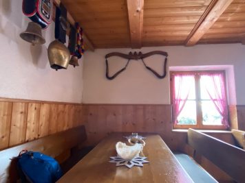 La malga è accogliente ma piccolina, con una decina di tavolini all’interno ed altrettanti fuori, altro motivo per cui è consigliato arrivare presto…. Se proprio non siete mattinieri o comunque volete evitare di dover aspettare troppo a lungo, optate per un pranzo tardivo, tipo verso le 14, quando la maggior parte della gente del posto che frequenta questo luogo ha ormai finito di mangiare ( 📞 348 669 9795).