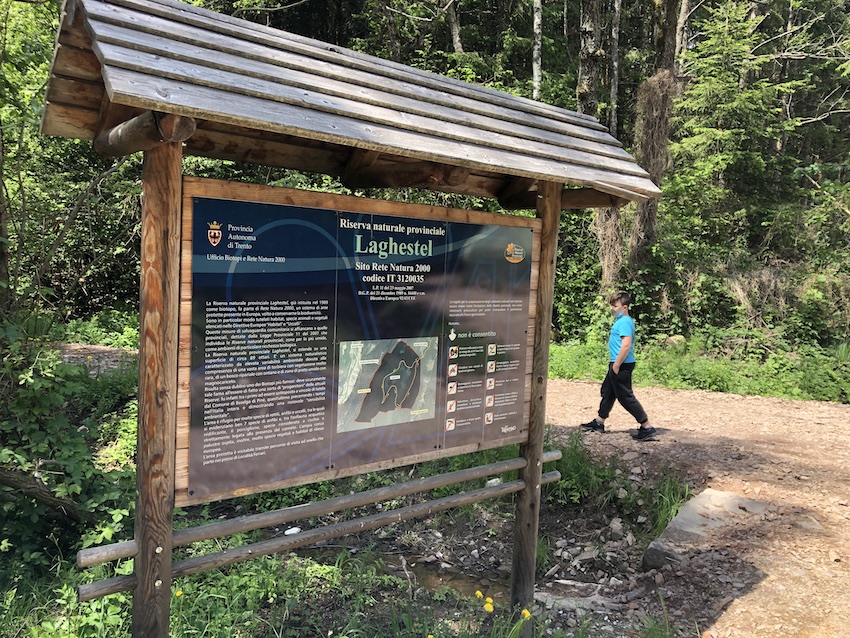 Il Laghestel è uno dei tanti biotopi trentini; un tempo era un lago profondo che ha subito il naturale processo di impaludamento e dal 1974 è una riserva protetta, dove si trova un particolare e raro tipo di flora. La raccomandazione, come sempre quando si visitano questi luoghi naturalistici protetti, è il massimo rispetto per la flora presente. Non si possono raccogliere piante e fiori o disturbare gli animali, ma si può apprezzare appieno della tranquillità del luogo, del bellissimo e fresco percorso nel bosco che saprà rigenerarvi. Buona passeggiata a tutti!