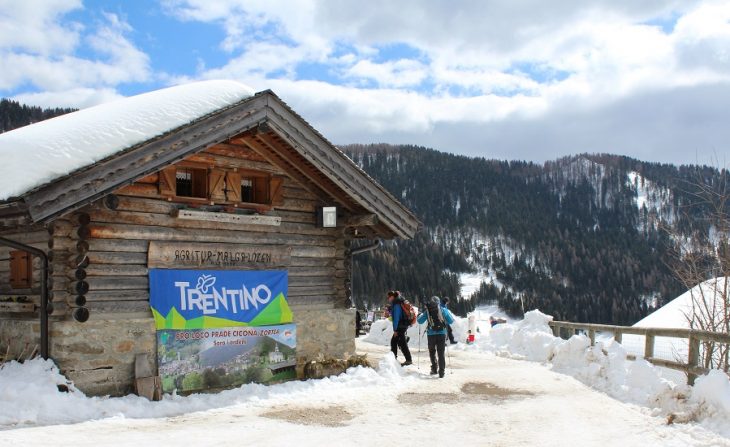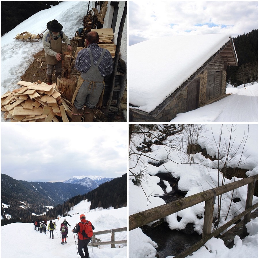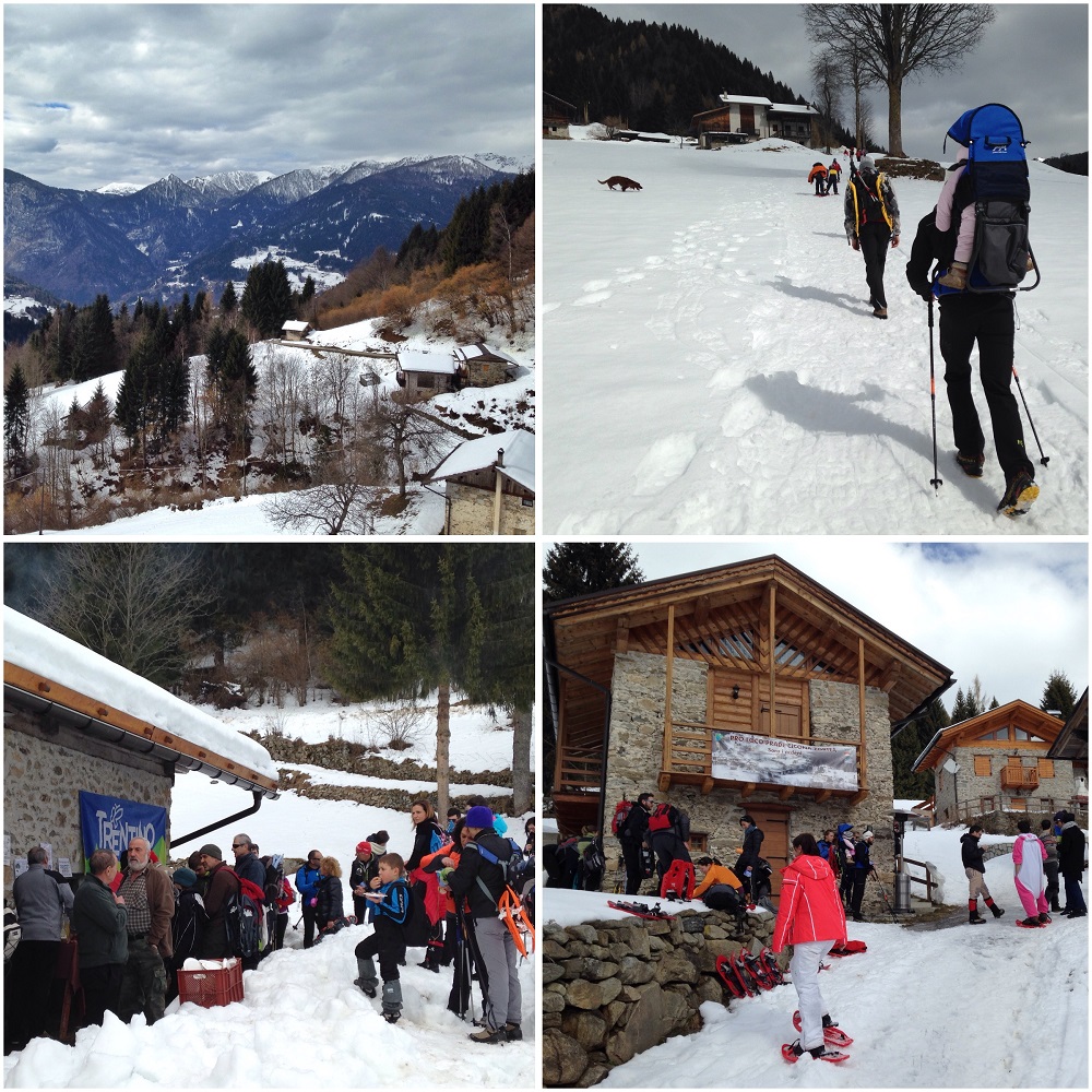 Ripartiti per la seconda parte dell’itinerario abbiamo potuto apprezzare un bel tratto del percorso affacciato su un ruscello di montagna tra piccoli ponticelli e malghe innevate, che ci ha condotto fino al Rifugio Lozen per un assaggio di polenta e salsiccia. Da qui in poco tempo abbiamo terminato la nostra ciaspolata ritornando a Zortea, dove ci aspettava il meritato dolce.