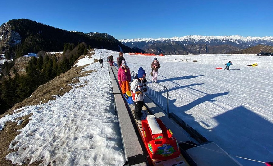 Una volta ritornati al punto di partenza, vi aspetta una semplice discesa con tapis roulant dedicata allo slittino e ai bob. Disponibile in loco, presso il Rifugio Garibaldi, anche il noleggio di bob, slitte e ciaspole.