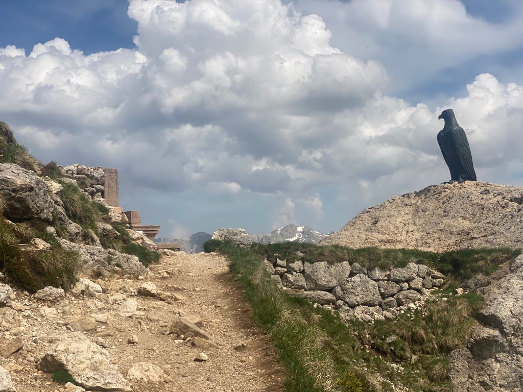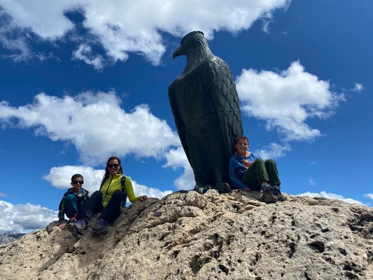 Avete mai visto l’aquila di Christomannos? Si tratta di una grande opera artistica in bronzo, dedicata a Theodor Christomannos, l’austriaco considerato uno dei pionieri del turismo nelle Dolomiti. È una maestosa aquila alta circa tre metri posizionata in un meraviglioso punto panoramico: da lì, infatti, a quota 2300 metri, si vede un bel pezzo di Val di Fassa e soprattutto le Pale di San Martino e la Marmolada in tutta la loro bellezza.