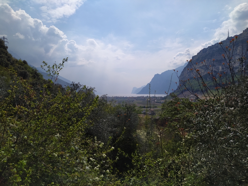 Proseguendo da qui, con un dislivello di circa 200 metri percorribile in 20 minuti, si può proseguire e scendere verso Torbole: il sentiero si snoda parzialmente nel bosco e poi attraverso un ampio uliveto, fino ad arrivare all’estremità nord dell’abitato, nei pressi dell’hotel Villa Stella (sono qui disponibili anche alcuni parcheggi liberi, nel caso voleste effettuare la passeggiata in senso contrario al nostro).