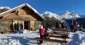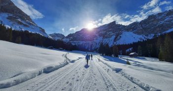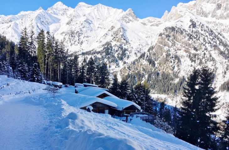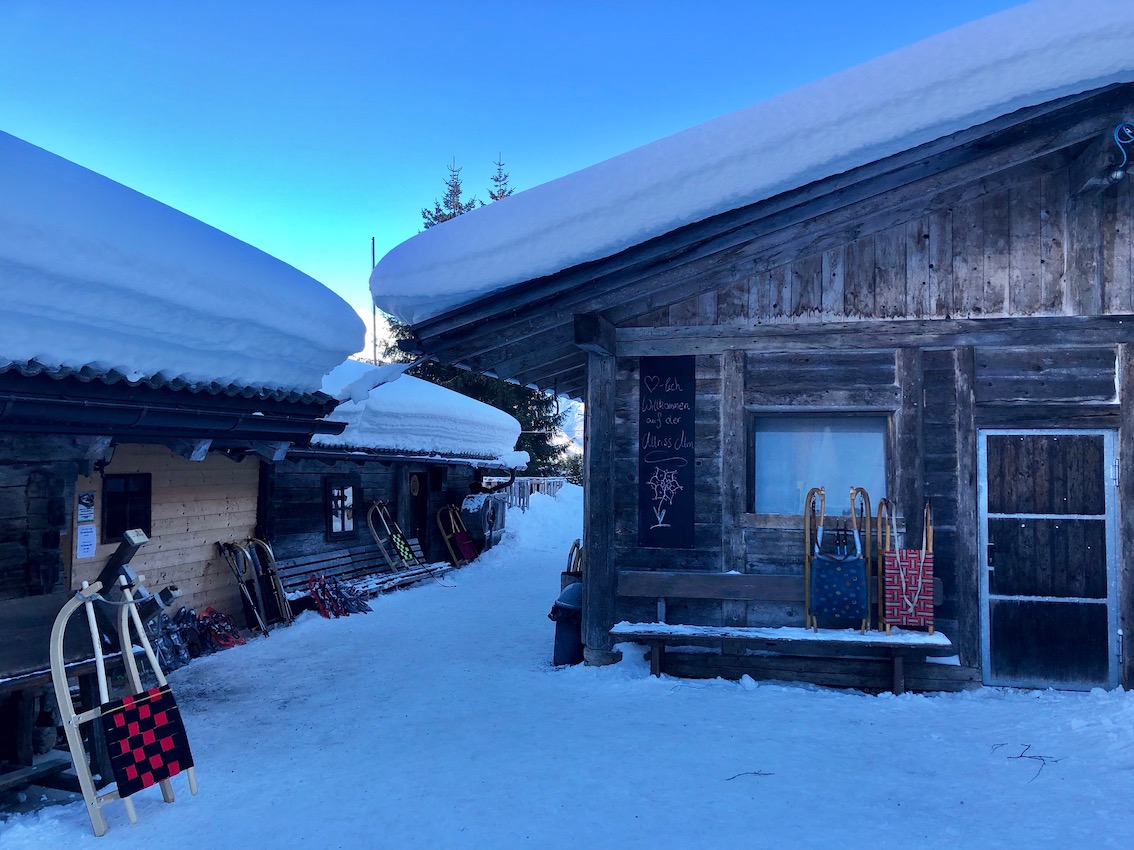 Sulla sinistra comincia la strada forestale che porta al rifugio in un’ora circa, con quasi 400 metri di dislivello. Consiglio: se ne avete una portate con voi la slitta (alla Alrissalm non le noleggiano), perché il percorso è sempre battuto perfettamente e sarà molto divertente tornare a gran velocità. Si sale nel bosco, in questo momento inondato di neve, fino a che la vista non si apre sul rifugio ed il panorama risulta magnifico. Davanti a voi le Alpi in tutta la loro bellezza, che segnano il confine con l’Austria.