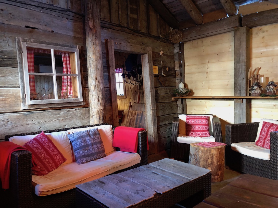 Molto carino il “salotto” che si trova appena entrati, tutto in legno, con una stufa calda e copertine da prendere per scaldarsi. Tutto l’ambiente è arredato con cura, anche la sala ristorante, con magnifici tavoli con vista.