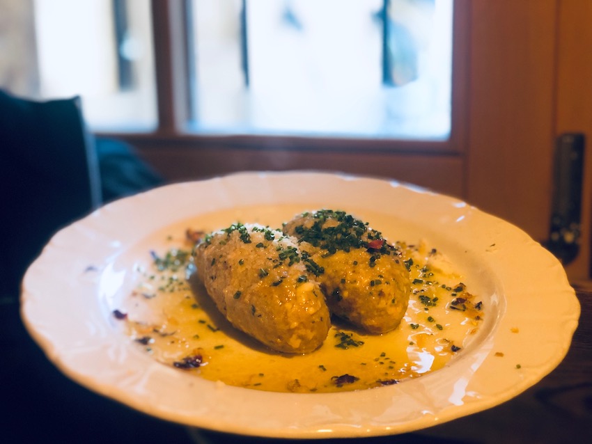 Il menu è ampio e variegato, con tantissime specialità altoatesine: canederli di ogni tipo, goulashsuppe, würstel, kaiserschmarren, spezzatino di cervo e via così!