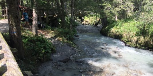 Ci troviamo a quota 1350 metri s.l.m., è un percorso semplice che presenta un ridotto dislivello; è lungo meno di un chilometro e mezzo ed è di breve durata (circa 45′). Pur essendo adatto a tutti, anche ai piccolini o a chi non cammina volentieri, permette di godere appieno del paesaggio torrentizio della Val Nambrone. Lungo il percorso si attraversano tante passerelle e ponticcioli sotto i quali passano torrenti turchesi, passando per prati e mirtillaie (slurp!)