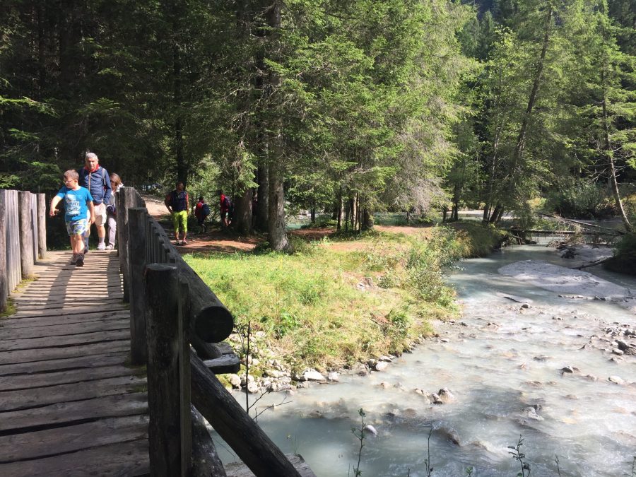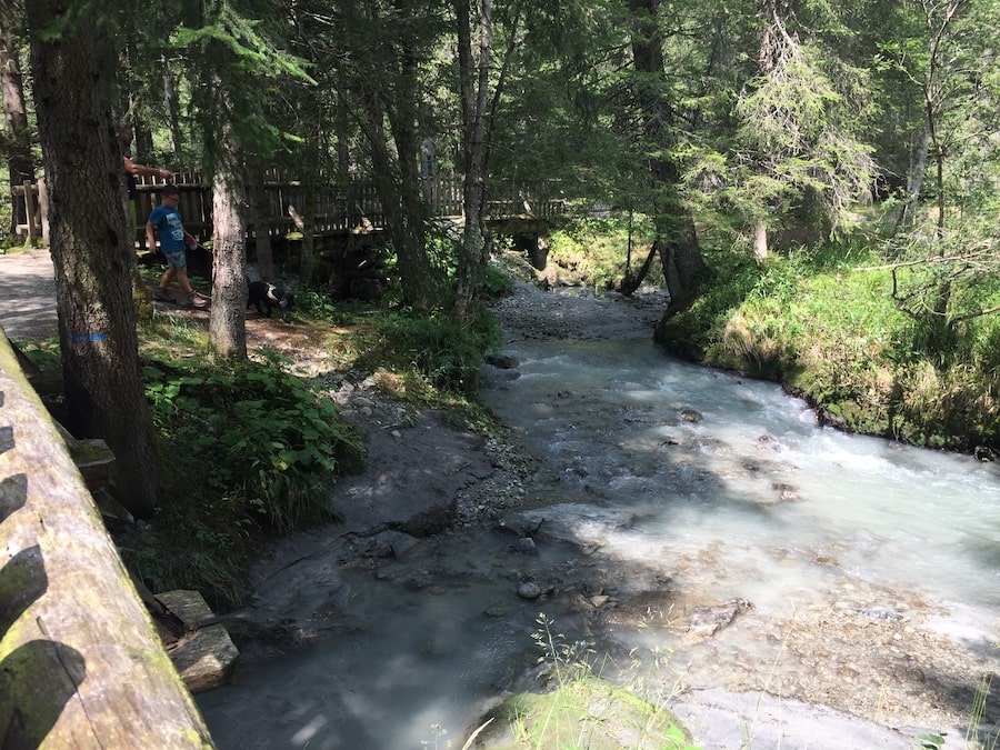 La passeggiata ad anello, particolarmente adatta a famiglie con bambini, si snoda nel sottobosco lungo un semplice sentiero attraverso passerelle, cascate e prati. Il sentiero si chiama “Amolacqua” e non a caso perché qui torrenti, conche d’acqua, spruzzi, pozze, laghetti la fanno da padroni.