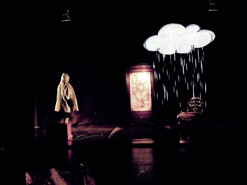 Nella semi-oscurità di una grande camera da letto in legno, la narratrice accoglie gli spettatori e ognuno si sdraia nel suo letto. Al centro della camera, sotto l’unica lampadina, racconta tutte le peripezie di Buchettino e nel momento stesso in cui le evoca se ne ode la traccia acustica. È quasi buio e l’unica attività percettiva disponibile è quella dell’orecchio che, in questo modo, potenzia la capacità di cogliere i suoni provenienti dai quattro lati.