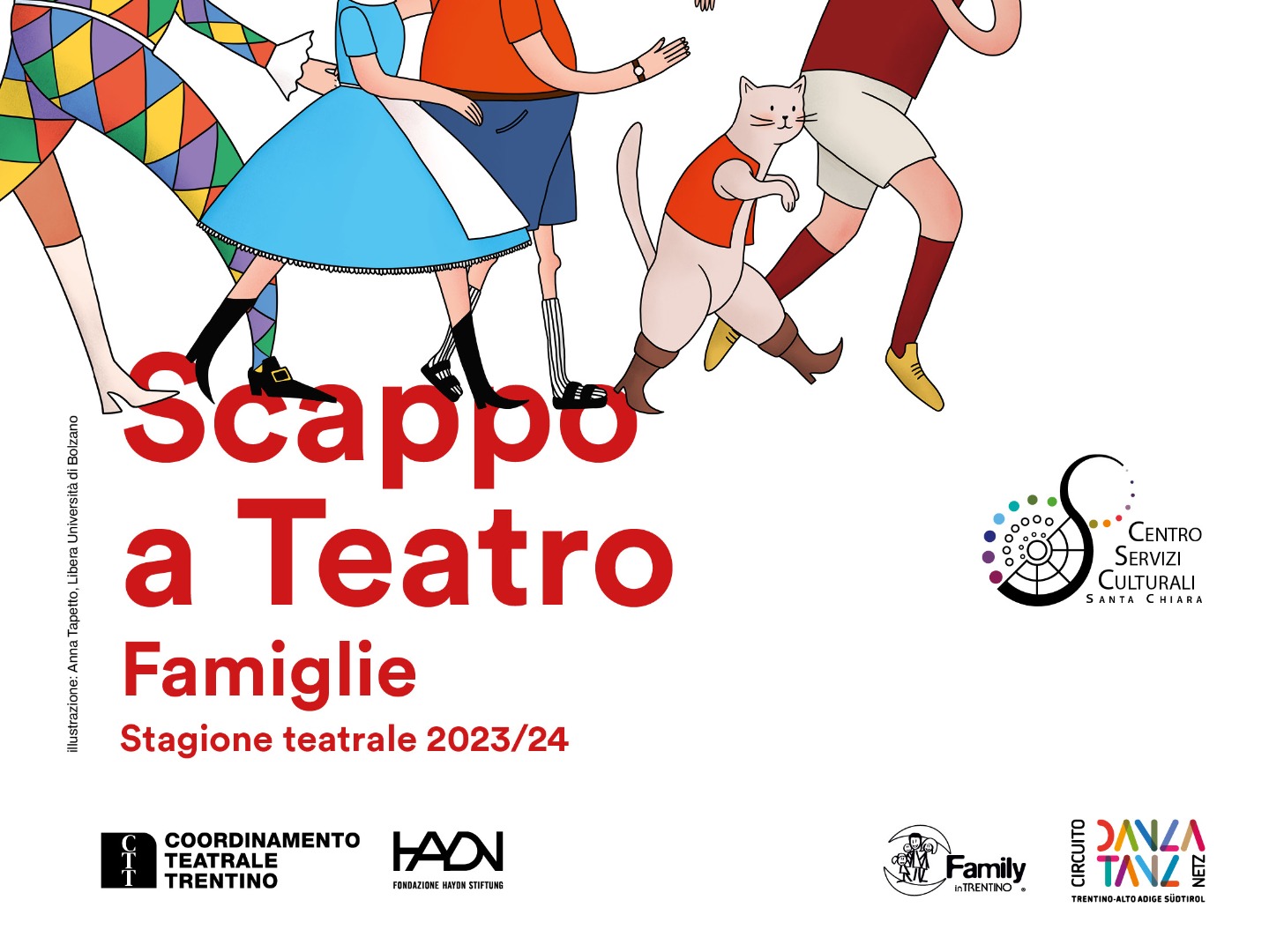 Il Centro S. Chiara è pronto a dare il via alla nuova stagione teatrale “Scappo a teatro” dedicata a bambini e famiglie con spettacoli in pomeridiana nel week-end. Gli eventi andranno da fine ottobre a inizio marzo 2026 e si alterneranno tra Trento e Rovereto, calcando i palcoscenici di ben quattro teatri: Teatro Sociale, Auditorium S. Chiara, Teatro Sanbàpolis e Auditorium Melotti.