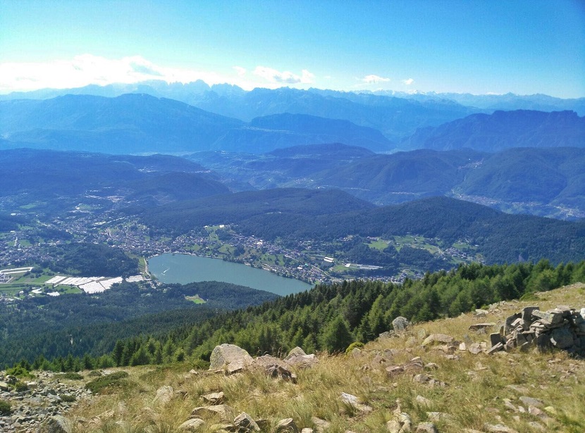 Per raggiungerlo con i bambini s’impiega un’altra oretta (percorso non adatto a passeggini), ma se abituati a camminare ne vale la pena e il panorama vi ripagherà del piccolo sforzo. Raggiunta la cima, soprattutto nelle giornate con il cielo limpido, potrete ammirare diversi gruppi montuosi, tra cui spiccano in lontananza le Dolomiti di Brenta, la Catena del Lagorai, la Vigolana, le tre cime del Monte Bondone e lo Stivo, guardando verso il basso potrete scorgere l’Altopiano di Piné e il Lago di Serraia.
