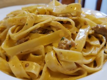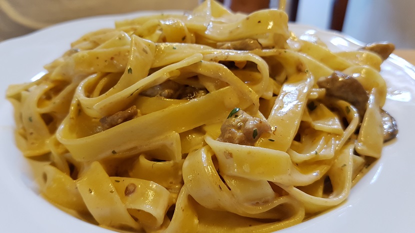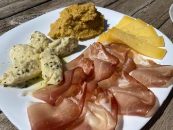 Una volta arrivati a destinazione un bel cartello con la scritta “ricotta fresca” ci ha subito messo l’acquolina in bocca e la scelta dei gnocchetti di ricotta fresca è stata scontata e non ha deluso le attese :). Molto apprezzati anche le tagliatelle con funghi e salsiccia e i dolci fatti in casa. All’interno la malga è molto caratteristica, ma con le belle giornate vi consigliamo di stare all’esterno dove sarete allietati dal suono dei campanacci.