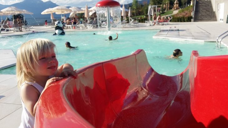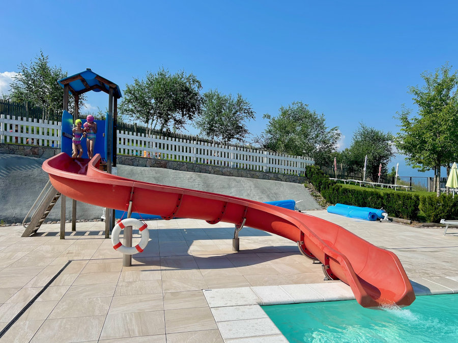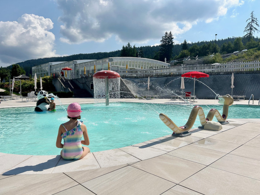 L’Aqualido di Ronzone offre una bella piscina esterna ad altezza bimbo (a partire da 60 centimetri circa fino a 85 centimetri d’altezza). I vostri figli non sapranno resistere alla tentazione di salire immediatamente sullo scivolo rosso che arriva dritto dritto in acqua! Nella stessa vasca sono ospitati altri simpatici animaletti (un panda, un serpentone e un grande fungo) con divertenti spruzzi per la gioia dei più piccoli.