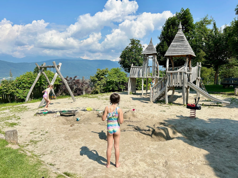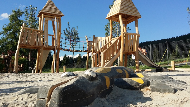 A noi è piaciuto molto anche il parco giochi in legno tutto costruito su un’area interamente ricoperta da sabbia sottile. Qui si può giocare con le palette e ci si sente come in spiaggia! Oppure salire sul bel castello con gli scivoli, andare sull’altalena o ancora dondolarsi come piccoli grilli e coccinelle.