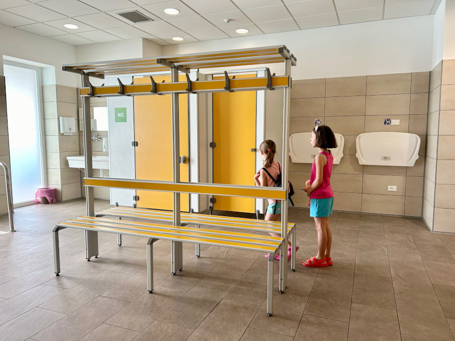 Il parco giochi sorge a due passi dalle piscine, circondato da una bella zona verde dove è possibile sdraiarsi con la coperta. Nelle immediate vicinanze sono invece a disposizione sdraio ed ombrelloni (a noleggio).