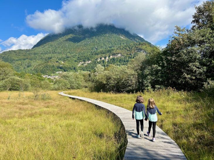 Proseguendo ci si addentra nella torbiera, a nostro avviso il tratto più suggestivo del percorso, un susseguirsi di passerelle e ponti di legno circondati da un bellissimo paesaggio.