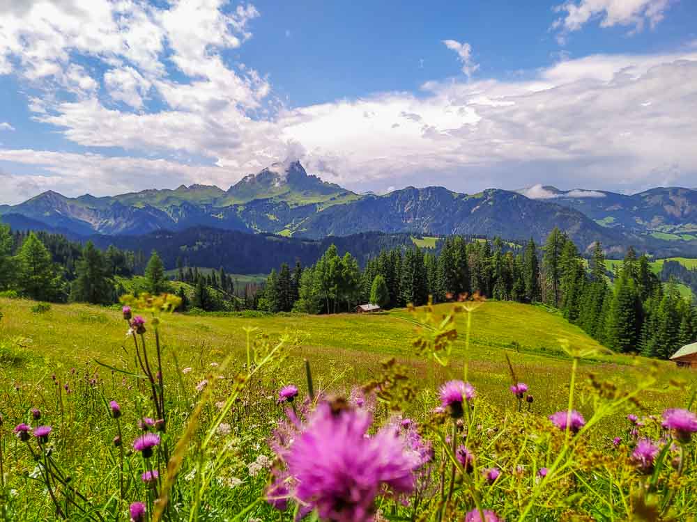 Un paesaggio da sogno a 360 gradi, così bello da sembrare quasi finto. Montagne imponenti e bellissime in ogni dove e infinite distese di prati fioriti… Tutto sommato non ci è dispiaciuta nemmeno la presenza delle nuvole: ci ha regalato bei giochi di luce ed ha garantito una temperatura più gradevole.