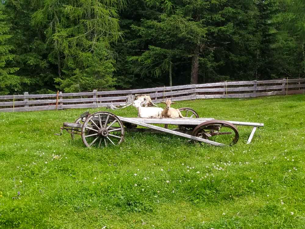 Quassù ci sono anche gli animaletti: ci sono alcune mucche, c’è il cane, ci sono i conigli e soprattutto delle simpaticissime caprette che si mettono in posa nei posti più strani all’interno del loro grande recinto.