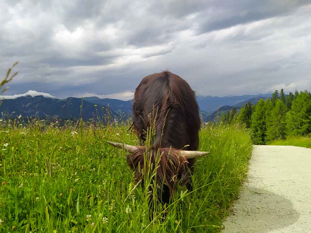 La stradina che sale verso il Ranch da André è invece bella ripidina ma vi darà la sensazione di stare arrampicandovi verso il cielo, circondati dai cardi e dal verde.