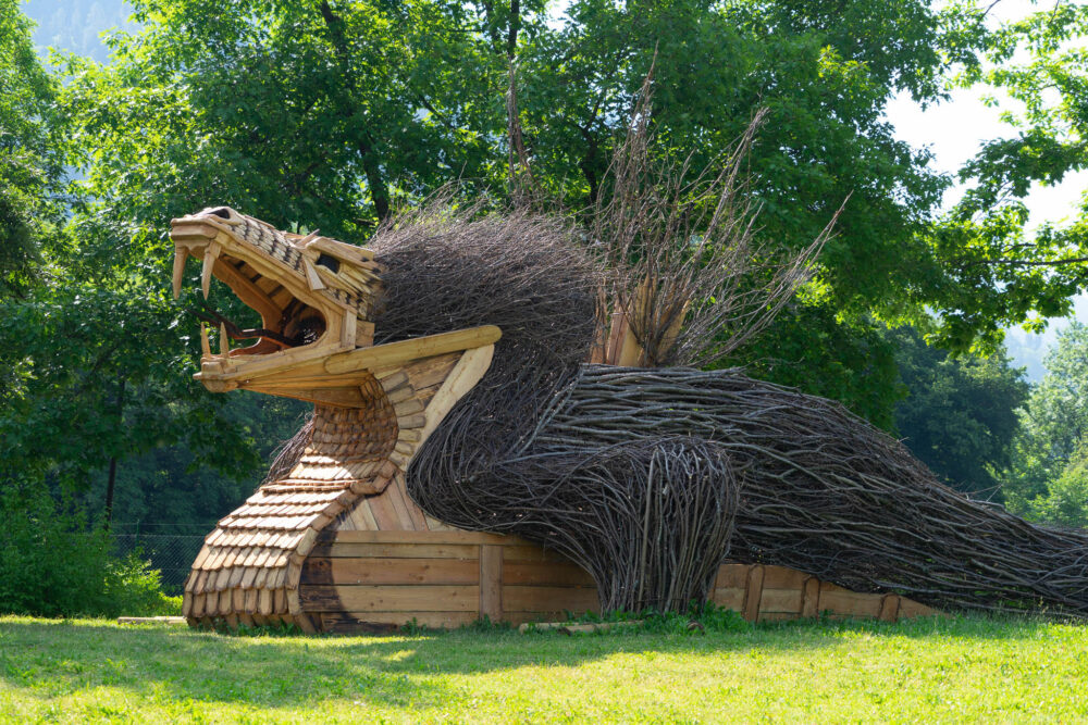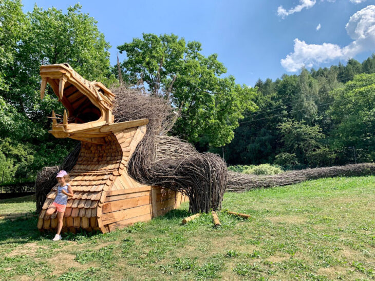 vedere a Pergine ValsuganaProseguendo si arriva al grande prato che ospita una strana creatura… al parco Tre Castagni ha trovato casa un animale leggendario, presente nei bestiari medievali: l’aspidosordo. Curiosi?