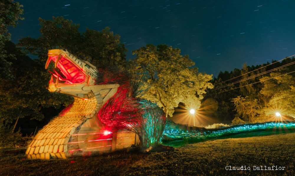 Ecco allora l’aspidosordo in tutti i suoi ventiquattro metri di imponenza e bellezza, nato da un’idea dell’amministrazione comunale di Pergine e per mano dell’artista Franz Avancini, che da oltre vent’anni realizza meravigliose opere di land art.