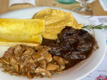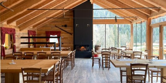 Attraversato il ponte si raggiunge poi Malga Fratte gestita dalla famiglia Daprà, dove è possibile gustare diversi piatti locali. Bellissima la sala in legno con caminetto e ampia vetrata che non lascia nulla all’immaginazione. All’esterno terrazza panoramica con tavoli e panche.