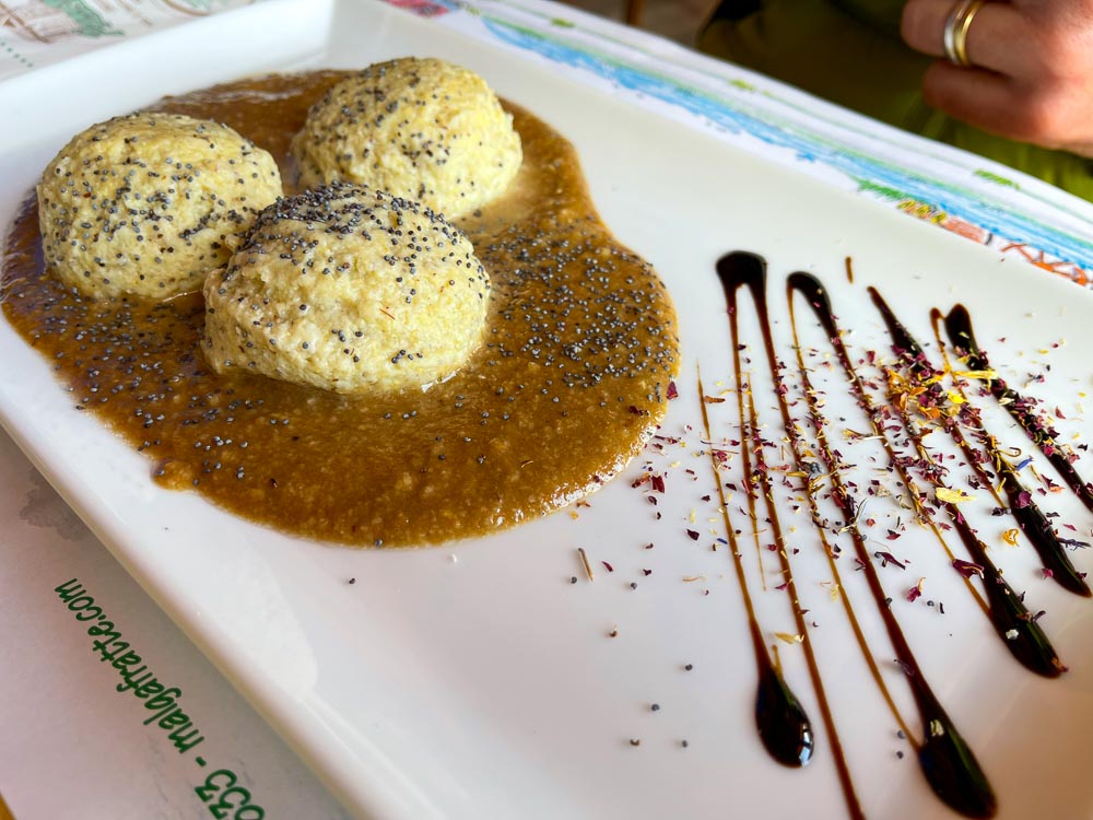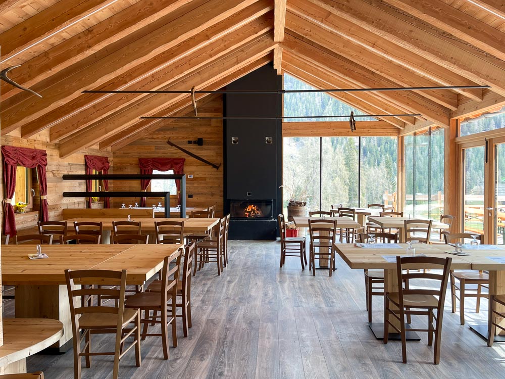 il menù è vario e si trovano i piatti tipici trentini: la polenta, il formaggio, la carne, i canederli, glu strangolapreti,… E non dimentichiamo i dolci e le grappe!