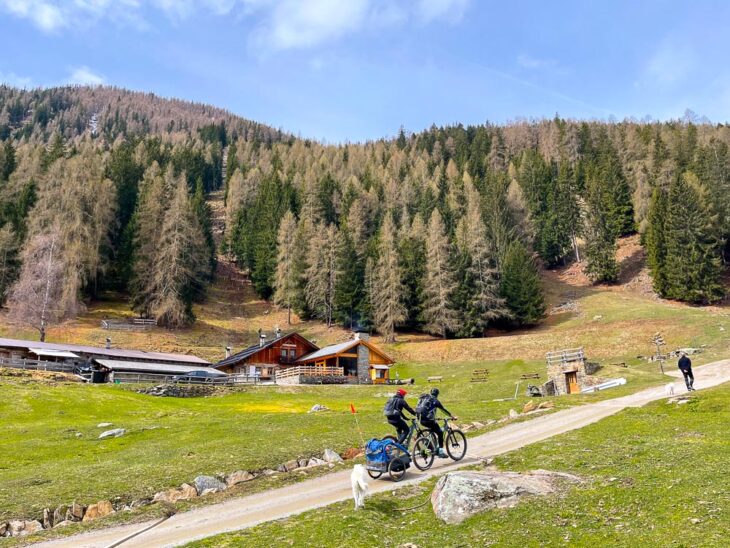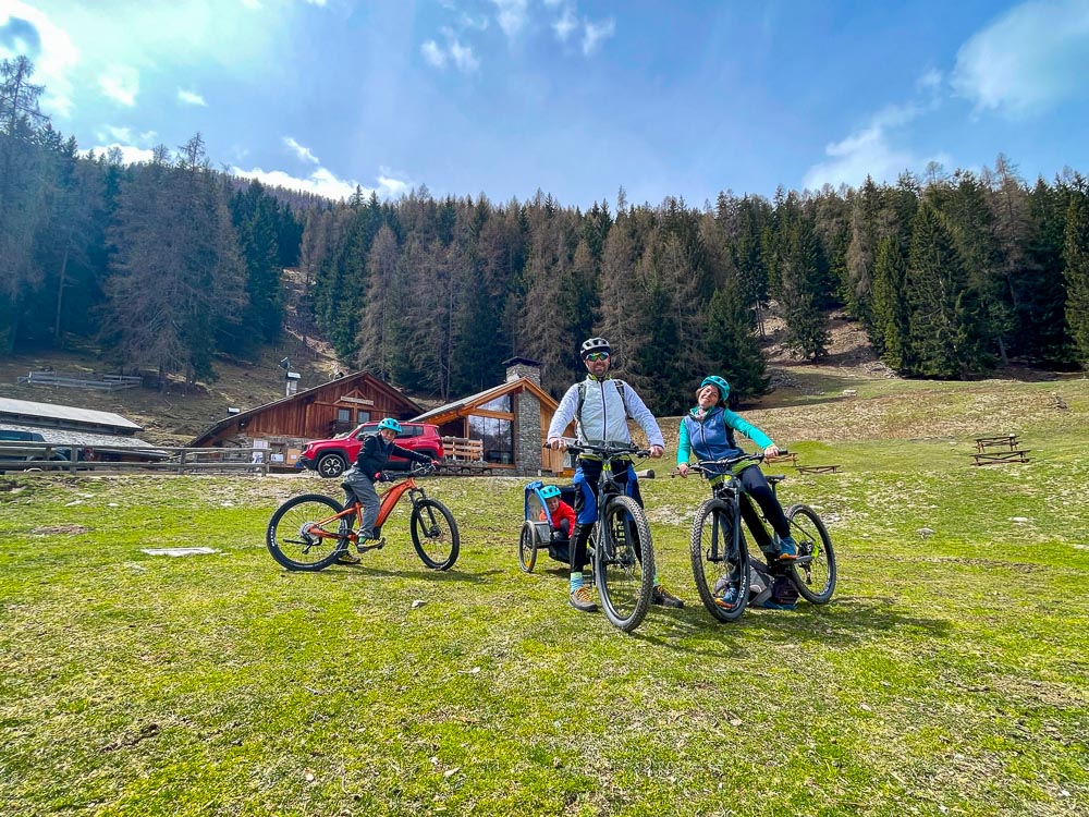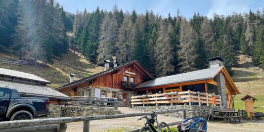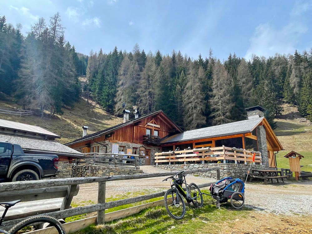 Malga Fratte è raggiungibile anche con il passeggino lungo la strada sterrata, anche se percorrendola si perde la bellezza del ponte tibetano e della passeggiata nel bosco. È possibile raggiungere malga Fratte anche in e-bike, beh noi ve lo consigliamo, ci siamo affidati a Rabbi e-bike per il noleggio e trascorso una giornata davvero divertente, leggi Val di Rabbi in e-bike