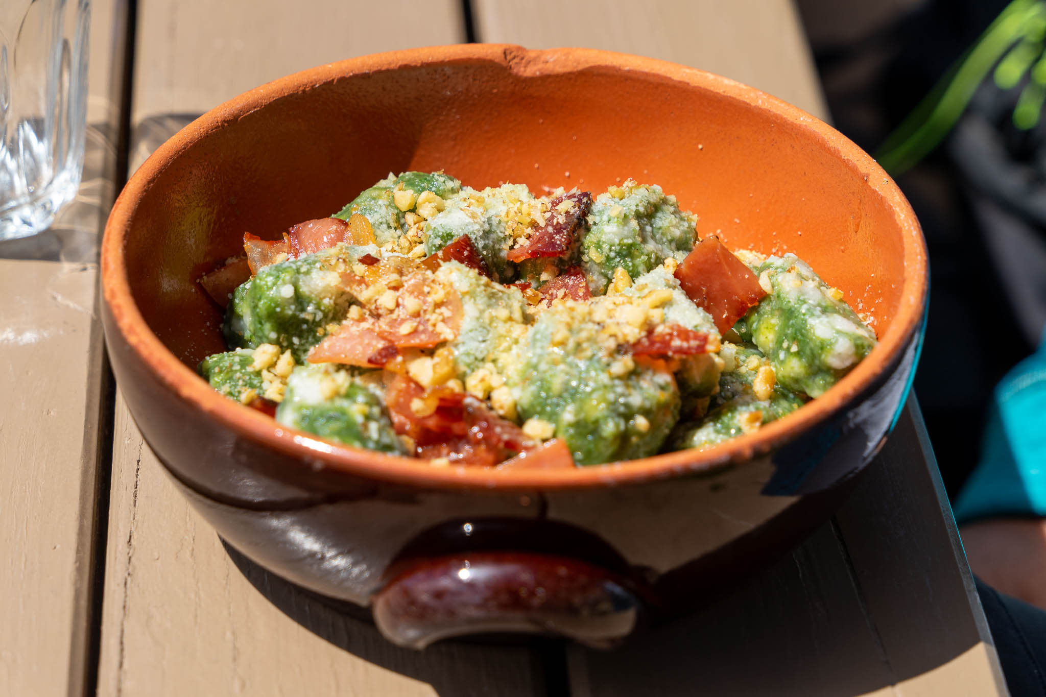 Noi ci siamo godute un favoloso pranzo a base di strangolapreti agli spinaci con noci e speck, e formaggio fuso con polenta e cavolo cappuccio, ma ci sono tanti altri piatti buoni e gustosi. Imperdibili i dolci, tutti fatti in casa, che ci hanno fatto ricaricare le energie dopo la passeggiata.