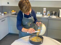 Versare il tutto nella tortiera (diametro di 24-26cm) precedentemente imburrata e infarinata e inforniamo a 180° per 35-40 minuti, senza dimenticare la prova stecchino.