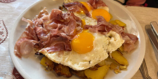 Noi abbiamo scelto di fermarci a mangiare qui, con degli ottimi canederli, gulasch con polenta e uova al tegamino con patate saltate e speck. Tutto davvero molto buono, porzioni molto abbondati e prezzi nella norma.