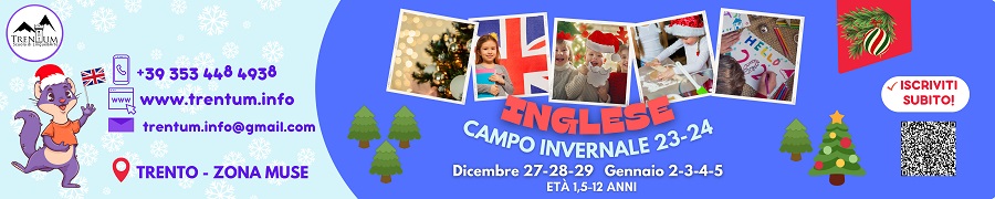 Dopo un’estate indimenticabile, ritorna il campo invernale in inglese ricco di tante attività 100% in inglese: inglese comunicativo, lavoretti natalizi, laboratori artistici e culinari, giochi e tanto divertimento!