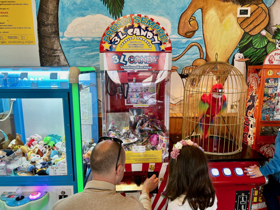 Nella sala adiacente troverete videogiochi cabinati, un tavolo a misura di bambino con attività per i più piccoli come puzzle, disegni da colorare e giochi ad incastro. Non manca nulla per intrattenere i bambini mentre gli adulti si godono un ottimo pranzetto!