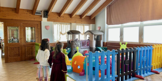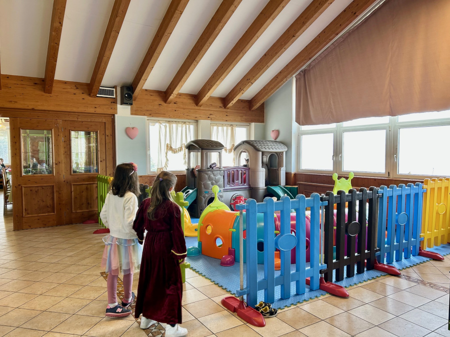 Sul retro si trova un piccolo parco giochi con scivolo e altalene, dove i bambini possono divertirsi in completa sicurezza. La grande sala ristorante è aperta anche agli esterni ed è il luogo ideale per pranzi o cene in famiglia. Per le festività (Natale, Capodanno, Carnevale, Pasqua) vengono organizzate feste con intrattenimento per i più piccoli.