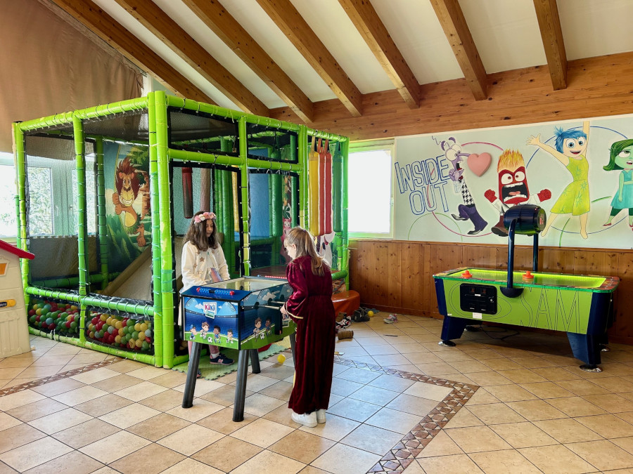 Oltre ad avere un menù dedicato ai più piccoli, da qualche anno è stata allestita una grande area giochi! Questo spazio interno dispone di una “piscina” di coloratissime palline con scivolo, mini calcetto, hockey da tavolo, un angolo morbido con una bella casetta, scivoli e un tunnel a forma di bruco.