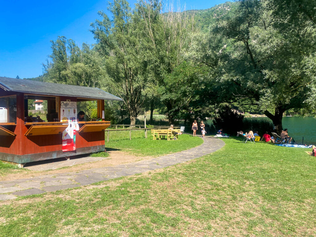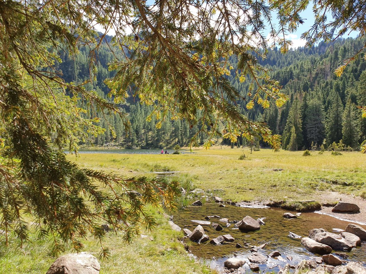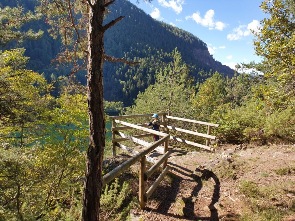 Un suggestivo ponticello in legno sarà il segnale del vostro arrivo a destinazione. Una volta superato, vi si aprirà davanti agli occhi un panorama stupendo, con il lago e la catena del Lagorai sullo sfondo. Sulla destra, un piccolo bivacco con cucina sempre aperto e, intorno ad esso, un paio di panche e un ampio prato su cui stendersi per un piacevole picnic nella natura.