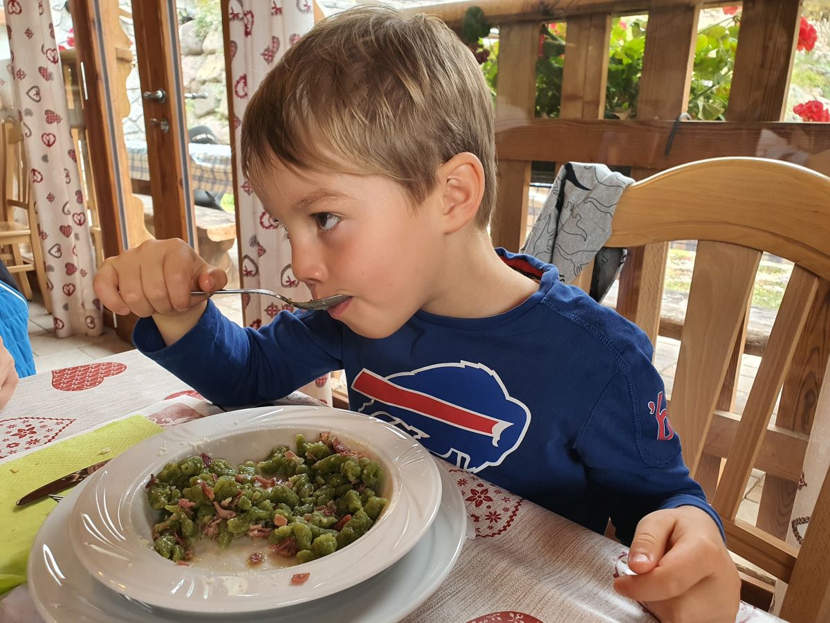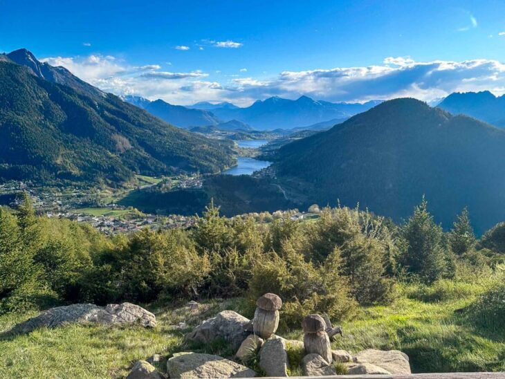 In e-bike, ci abbiamo messo circa un’ora e mezzo per la salita (con bimbi trainati con corda e una pausa nel bosco) e 40 minuti per la discesa. Con passeggino, vanno considerate circa due ore per la salita e poco più di un’ora per la discesa.