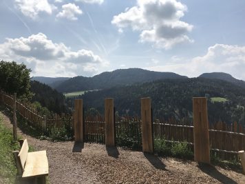 Siamo arrivati così alla stazione numero 8, situata su un tornante, all’interno di una curata aiuola fiorita. Da qui abbiamo percorso pochi metri lungo la strada (Via Falzeben) fino ad arrivare all’ufficio turistico e trovare il nostro amico Foly, che ci attendeva per proseguire alla ricerca delle successive stazioni.