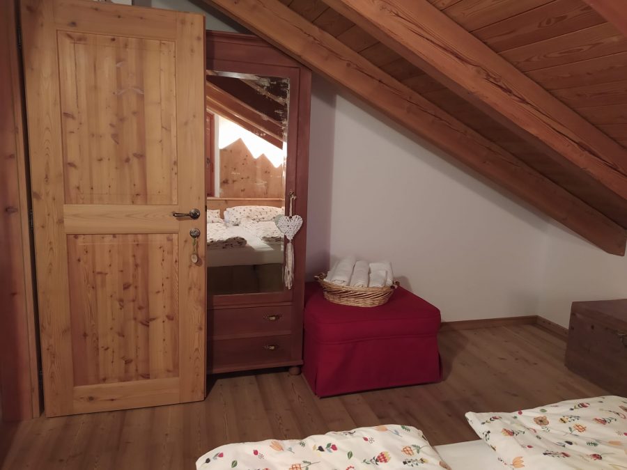Una volta entrati nella zona comune al primo piano (salottino e zona colazione con cucina, dove gli ospiti possono usufruire del frigorifero per conservare le proprie cose) si viene avvolti dal calore e dall’intimità del legno (e in inverno anche da quello di una bellissima stufa), degli arredi e delle decorazioni; tutto ideato e realizzato da nonna Elena. C’è anche un piccolo balconcino per rilassarsi leggendo un libro sorseggiando una tisana home made (con vista sul prato, per poter sorvegliare i bambini).