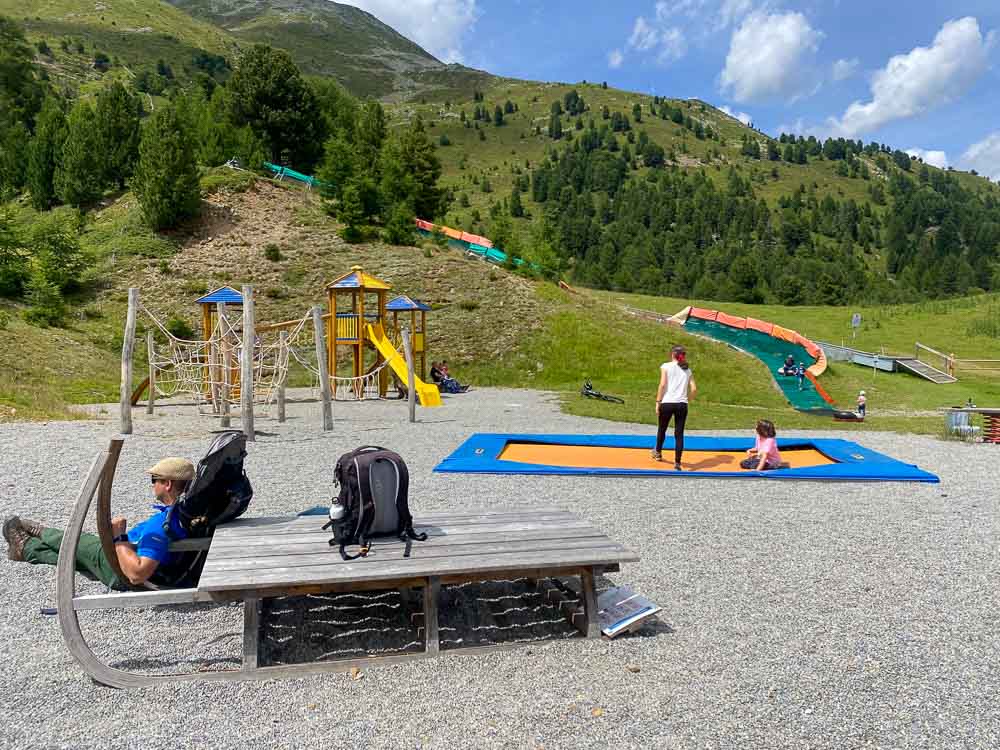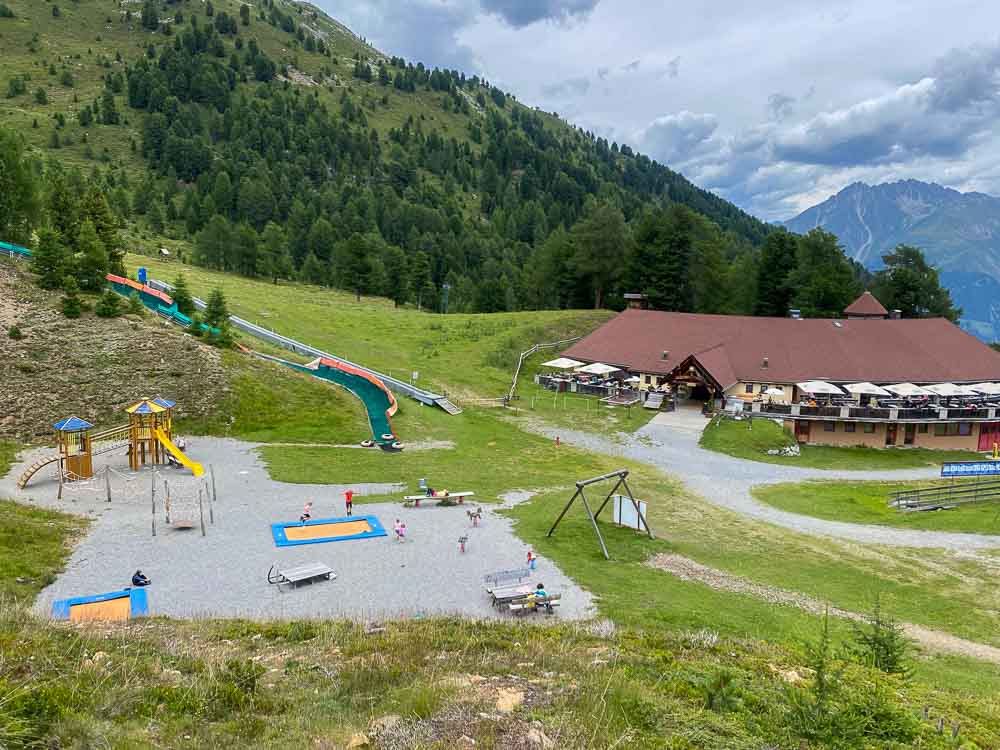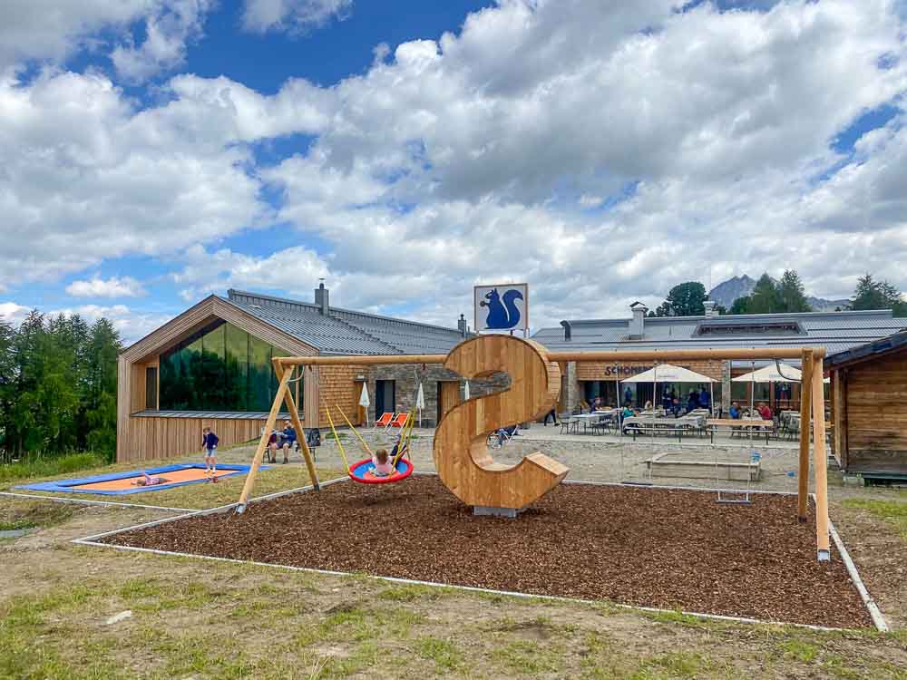 Partiamo dall’inizio. Si parcheggia l’auto agli impianti di Belpiano, gratuitamente se si acquistano i biglietti per la risalita (orari e prezzi aggiornati QUI). All’arrivo si trova il rifugio Schöneben, con qualche gioco per i bambini tipo tappeto elastico, altalena e sabbiere.