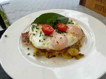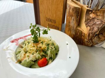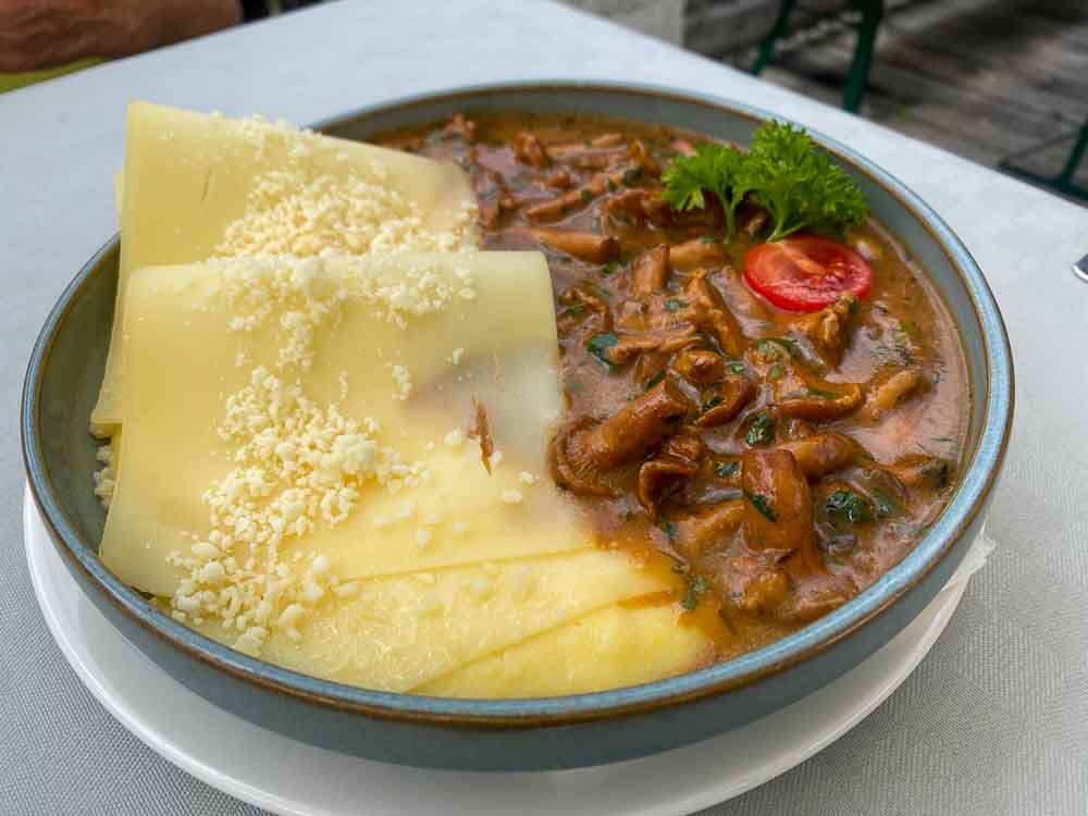 In realtà un vero e proprio ristorante, con i piatti della tradizione altoatesina. Noi abbiamo preso una buona polenta, formaggio e finferli freschi, il classico uova, speck e patate saltate e i gnocchi alle ortiche. Prezzi nella media, tutto buono.