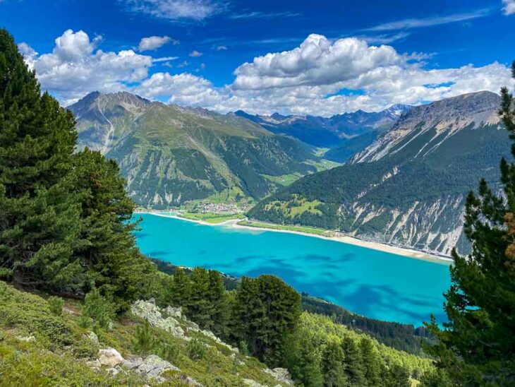 Prendete il sentiero 14 e da lì a poco vi sorprenderà la vista sul lago di Resia: un colpo d’occhio sorprendente per il suo colore.
