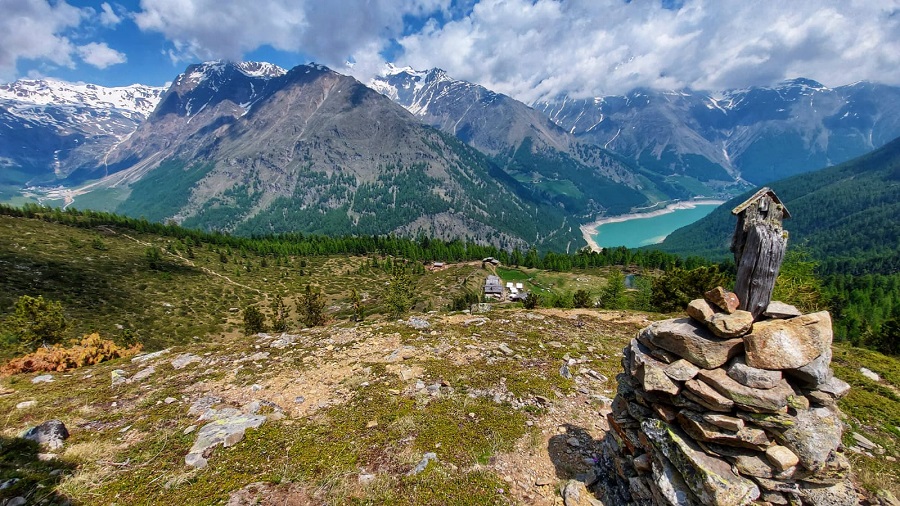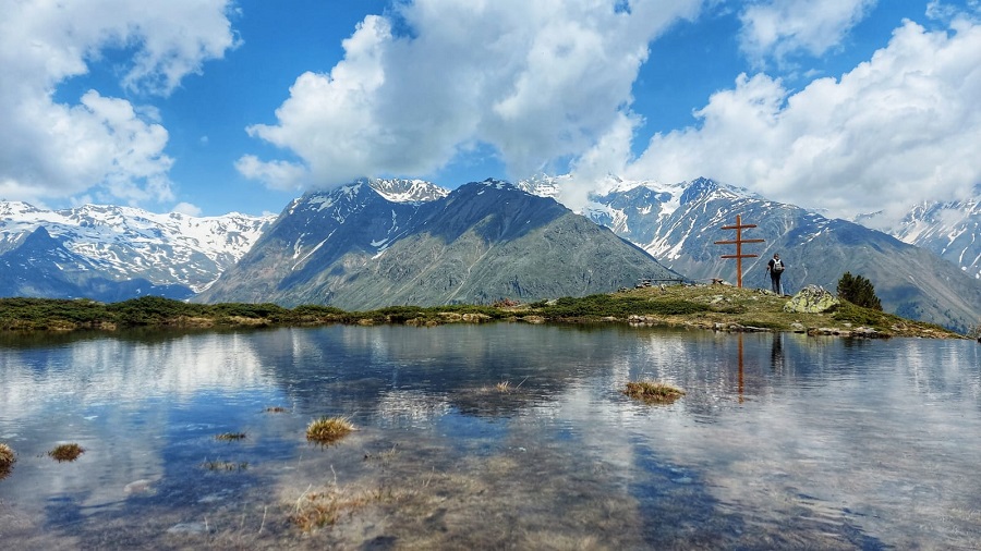 Prima del rientro, che avviene lungo lo stesso sentiero, vi consigliamo di raggiungere la croce che si trova sul promontorio proprio sopra la malga. Sono 15-20 minuti di passeggiata ma ne vale la pena e vi permetterà di godere di una posizione privilegiata dove poter ammirare in tutto il loro splendore le montagne che circondano la Val Senales e il Lago di Vernago.