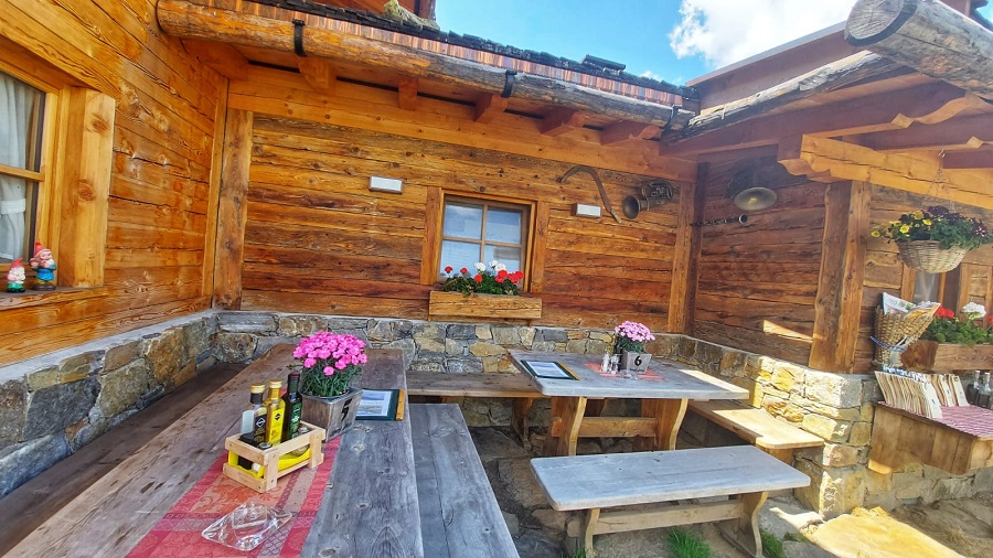 Da qui un’altra mezz’oretta abbondante di sentiero nel bosco e si arriva alla Bergl Alm. La malga è visivamente molto bella e si può notare a colpo d’occhio la cura dei dettagli da parte dei gestori.