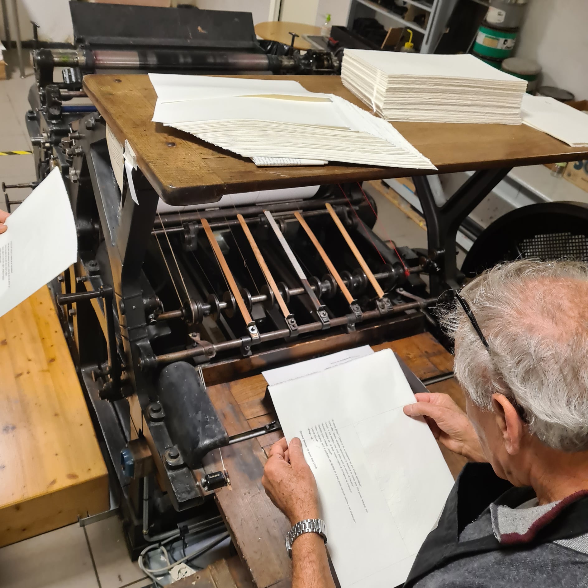 Un’officina tipografica con torchi, caratteri mobili… Un gruppo di ex tipografi volontari cura attività di stampa e legatoria (anche corsi). Numerose le attività didattiche. La sala, al piano interrato di Palazzo Annona, ospita attività didattiche e allo stesso tempo si presta come luogo di esposizione. Inizialmente progettata per accogliere un percorso museale dedicato al libro, alla sua storia, alla sua evoluzione nel corso dei secoli e alla sua valorizzazione, grazie a donazioni private, custodisce vari macchinari da stampa originali dei secoli XIX e XX. E’ stato così ricostruito l’ambiente di lavoro di una antica tipografia: dalla composizione a mano con i caratteri mobili all’uso di tecnologie sempre più evolute. La Biblioteca, grazie alla disponibilità di questi artigiani, offre, in collaborazione con il MART, percorsi didattici indirizzati ai bambini e studenti: “Nella bottega di Depero”, “Per tipi di carattere”, “Librare” e “Carta e C-Arte”. I giovani apprendisti possono provare l’emozione di stampare con un torchio ottocentesco, utilizzando inchiostri e caratteri mobili, come al tempo di Gutenberg. Ai più grandicelli vengono poi mostrati i magazzini storici, dove si custodiscono i tesori della biblioteca. Imparano così il valore dei libri anche come oggetti, risultanti da un lavoro lento e complesso che oggi solo pochissimi conoscono. Questo laboratorio ospita anche mostre temporanee dedicate a singoli aspetti dell’arte tipografica e iniziative connesse alla stampa e promozione del libro. L’integrazione del “Laboratorio Arte Grafica” con le altre sezioni in cui è attualmente organizzata la Biblioteca permette di cogliere l’intero processo di produzione del libro, articolato in tre fasi: la sua creazione, documentata nelle carte dei singoli autori conservate nella Sezione manoscritti e archivi personali; la sua realizzazione in tipografia (laboratorio didattico di arte grafica) e commercializzazione (archivio delle Arti grafiche Manfrini) e, infine, la sua fruizione, conservazione e valorizzazione (biblioteca storica e moderna).