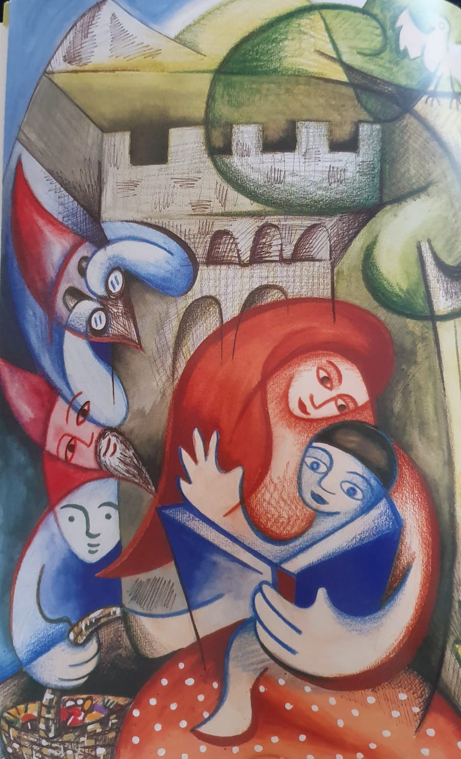 Partendo all’avventura dall’ingresso del Castel Firmian ci siamo introdotte nel bosco facendo il cosiddetto “Senter del Bepi” sopra la collina del ricovero e, a sorpresa, siamo sbucati proprio alla torretta dell’acquedotto: di lì è stato un accavallarsi di emozioni e racconti ispiratissimi: le bimbe si sono completamente dimenticate dei dinosauri e hanno inventato spontanealmente una fiaba che poi ho messo per iscritto per non dimenticare quella fantasia immediata e di prima mano.