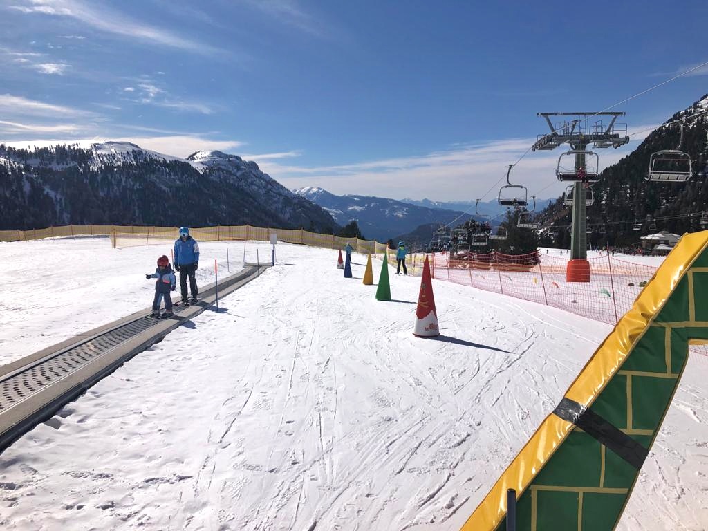 Per imparare a sciare divertendosi, sono inoltre presenti due tapis roulant con percorsi dedicati, da fare insieme a mamma e papà o con i maestri della Scuola di Sci. Vengono proposti corsi collettivi o individuali. Per maggiori info e tariffe sempre aggiornate cliccate QUI.